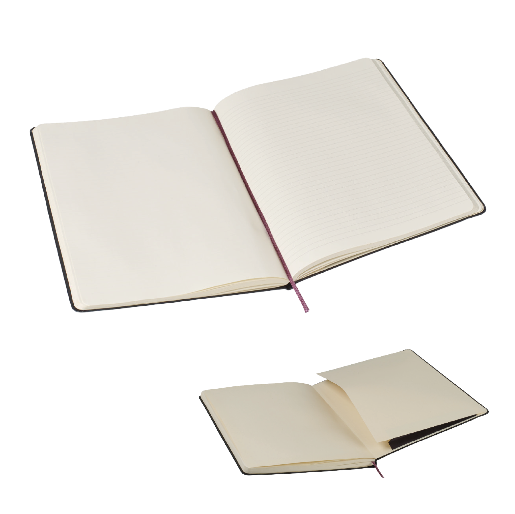 The Classic Notebook with both ruled and plain pages together. This notebook allows you to take notes and get creative at the same time, without having two different notebooks. Bound hard cover with rounded corners, bookmark and elastic strap closure. Mixed format: Plain format on the left and Ruled format on the right. Acid-free paper. Expandable inner pocket. 192 pages (96 sheets). Notebooks come packaged with a Moleskine branded ivory paper band and are individually shrink wrapped.