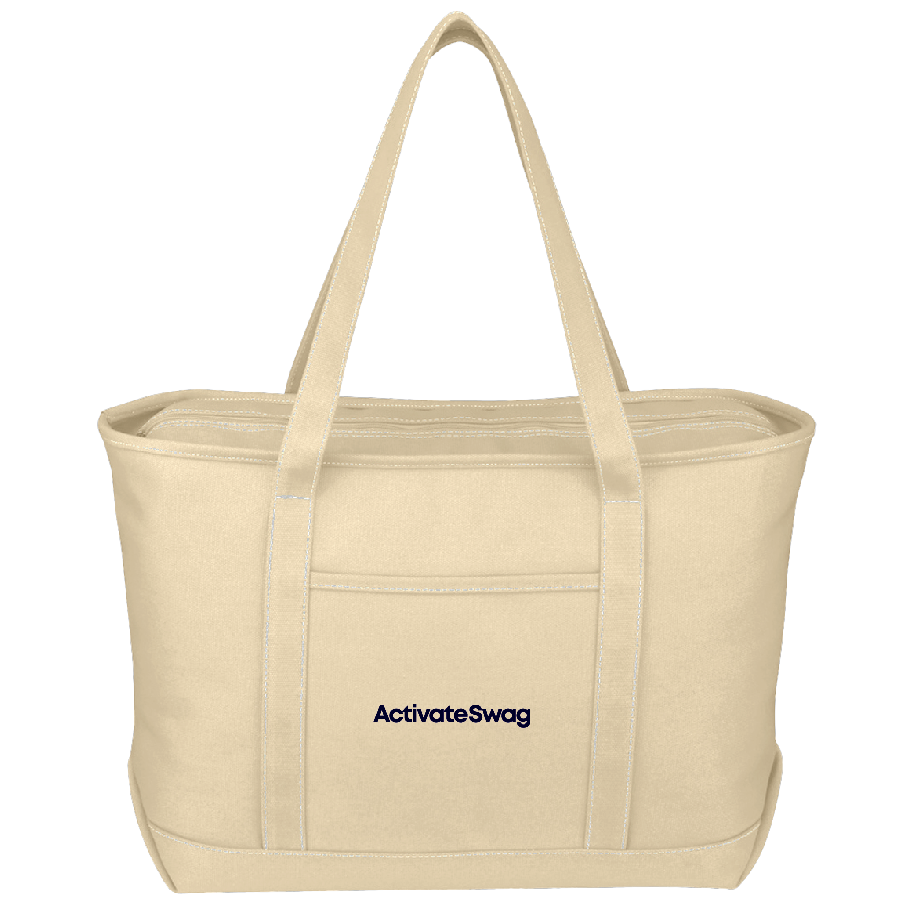 Get carried away with this large cotton canvas yacht tote! With an approximate size of 24" W x 14" H x 7" D, this 24 oz. canvas bag features an outside pocket, zippered top closure and 30" handles. It makes a fantastic shopping bag for running daily errands. Available in a variety of colors to choose from, customize this trendy tote with an imprint of your logo and carry your brand name further! Spot clean/air dry for best results. Please note, these orders are sold in full carton quantities only.