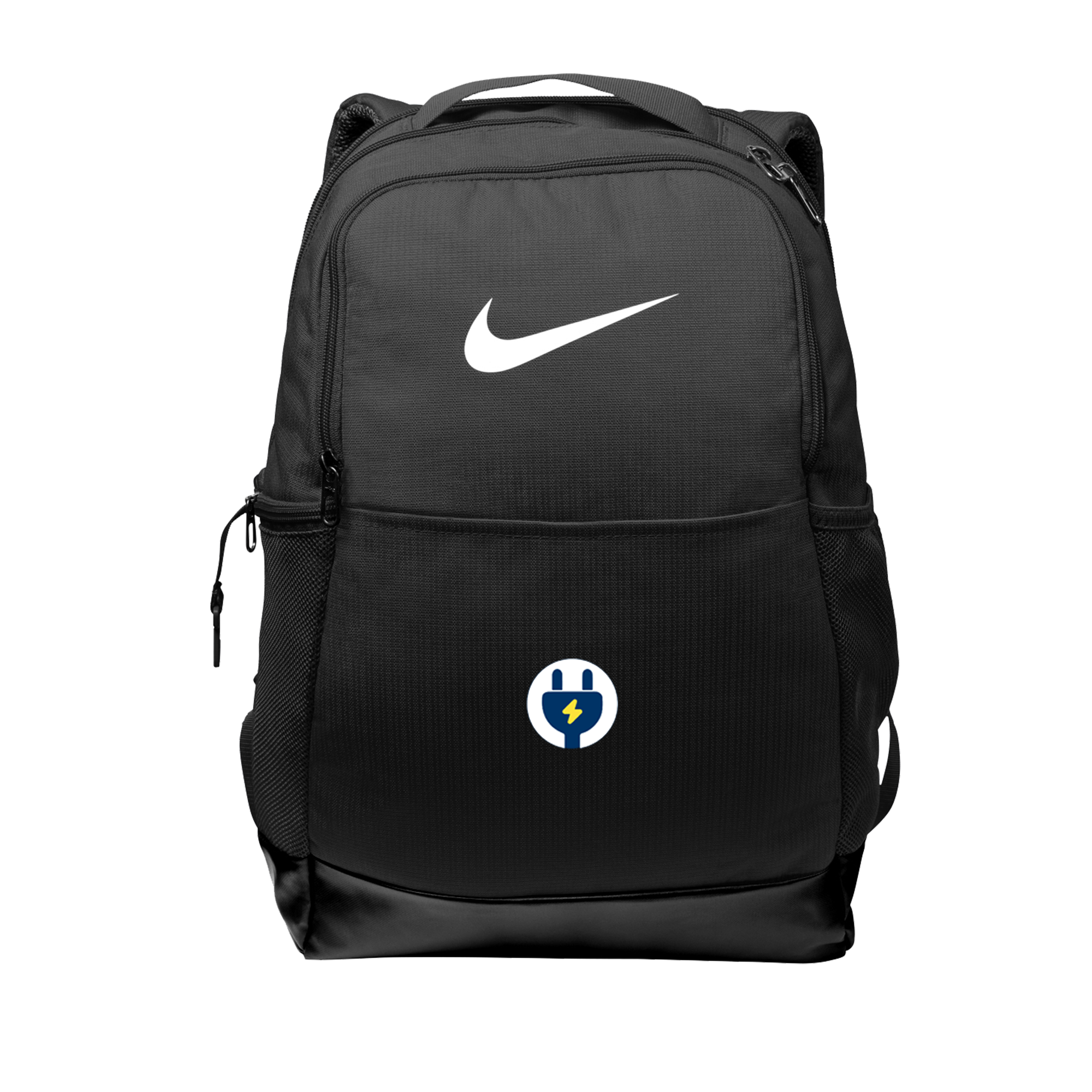 This Nike Brasilia Medium Backpack has multiple pockets to help you stay organized with supplies, clothing and gear. Featuring contrast Swoosh design trademark at front pocket, padded sleeve for your laptop, materials made from recycled polyester, 100% Polyester, a water-resistant coating on bottom panel helps keep gear dry.