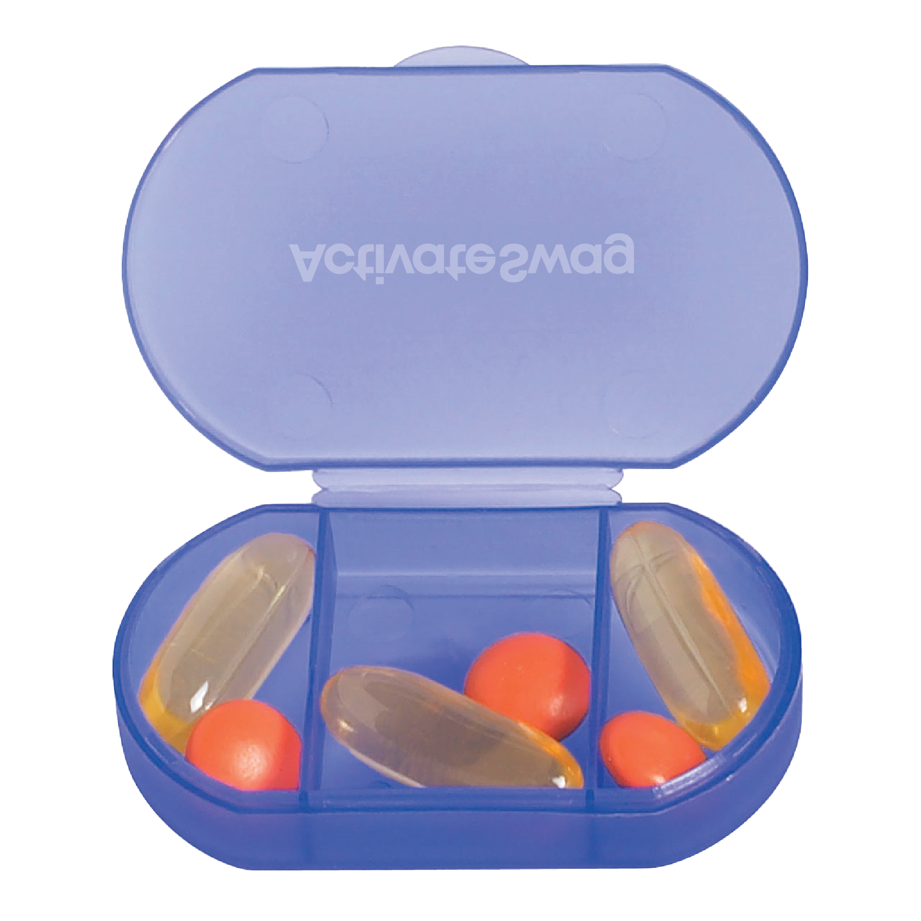 This Oval Shape Pill Holder is just what the doctor ordered to spruce up your advertising campaign! Whether you're a doctor's office in need of a few new customers or a pharmaceutical company that wants to give your clients an edge on keeping their medicines together, this is the promotional product for you. It's available in multiple frosted colors and can be customized with your company name and information using silkscreen. It features three separate compartments and meets FDA requirements. Market your brand on a useful and attractive advertising tool!