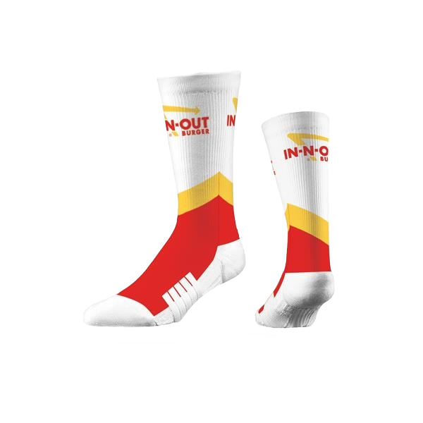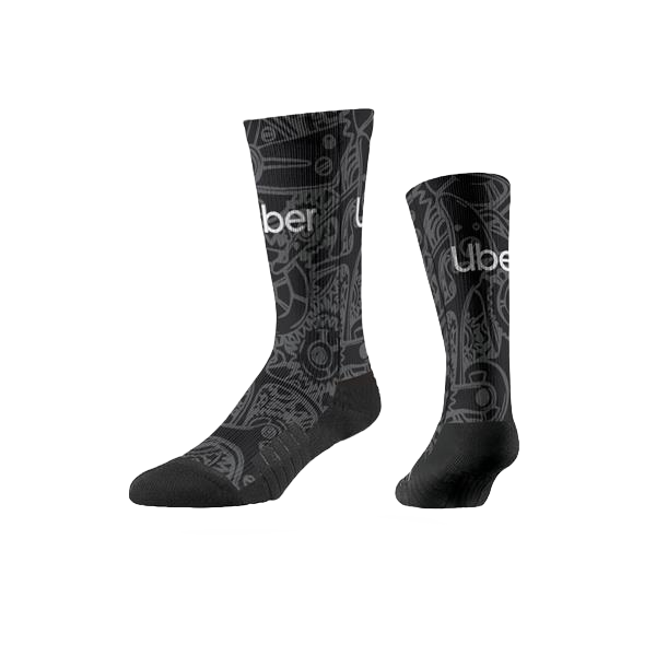 Try on a pair of the finest quality sublimated socks on the market! Each crew-length sock starts out as a pre-knit base with either white or black comfort features. Showcase a company logo or marketing design with a full-color print on the entire front and back of each sock. Our digital ink printing uses a lower temperature that takes its time to seep deep into our micro-poly design area. It can be color matched to meet your exact specifications. Standard packaging is a single poly bag, however, special packaging is available upon request. Try on a pair with our free sample program and you will never want to wear another sock brand again!