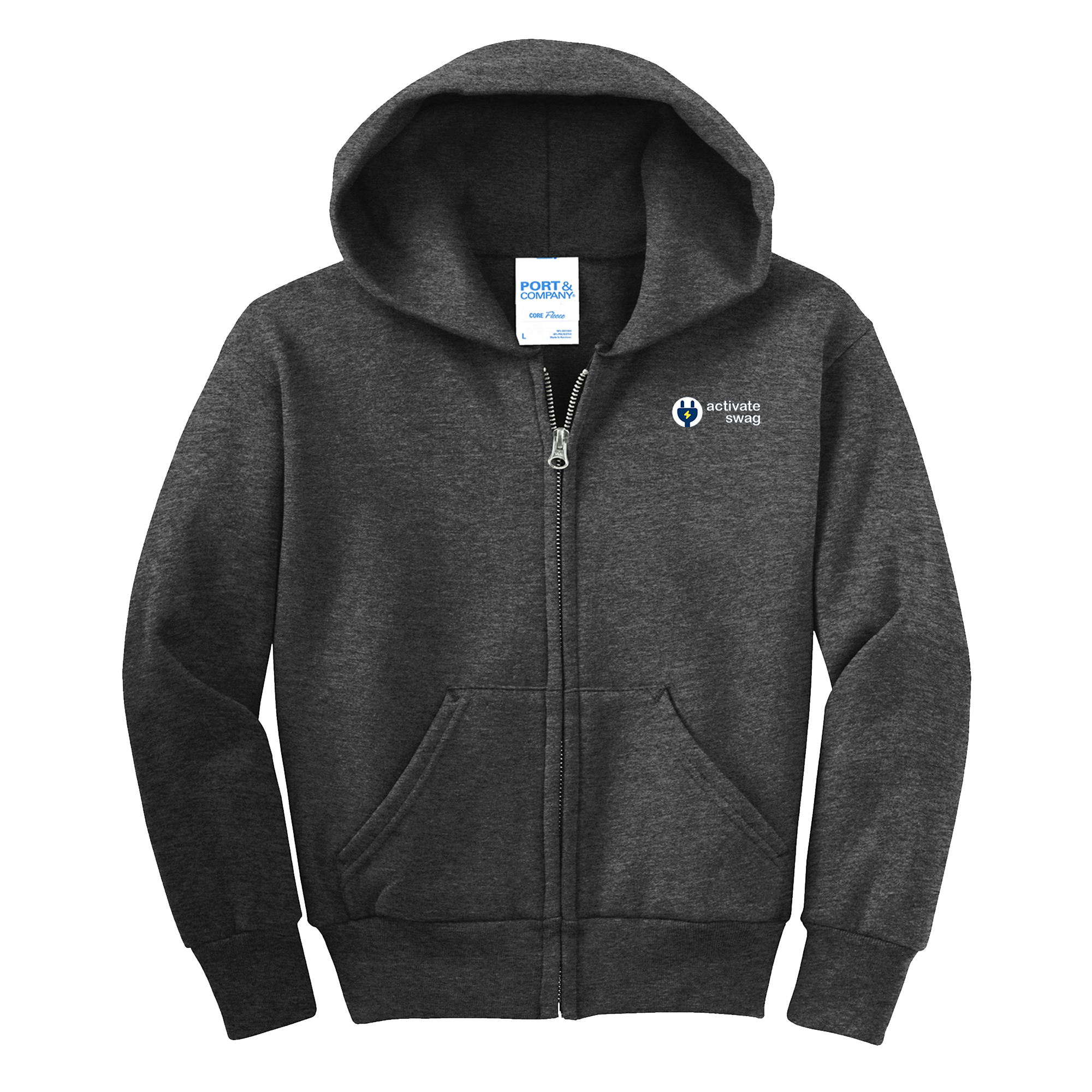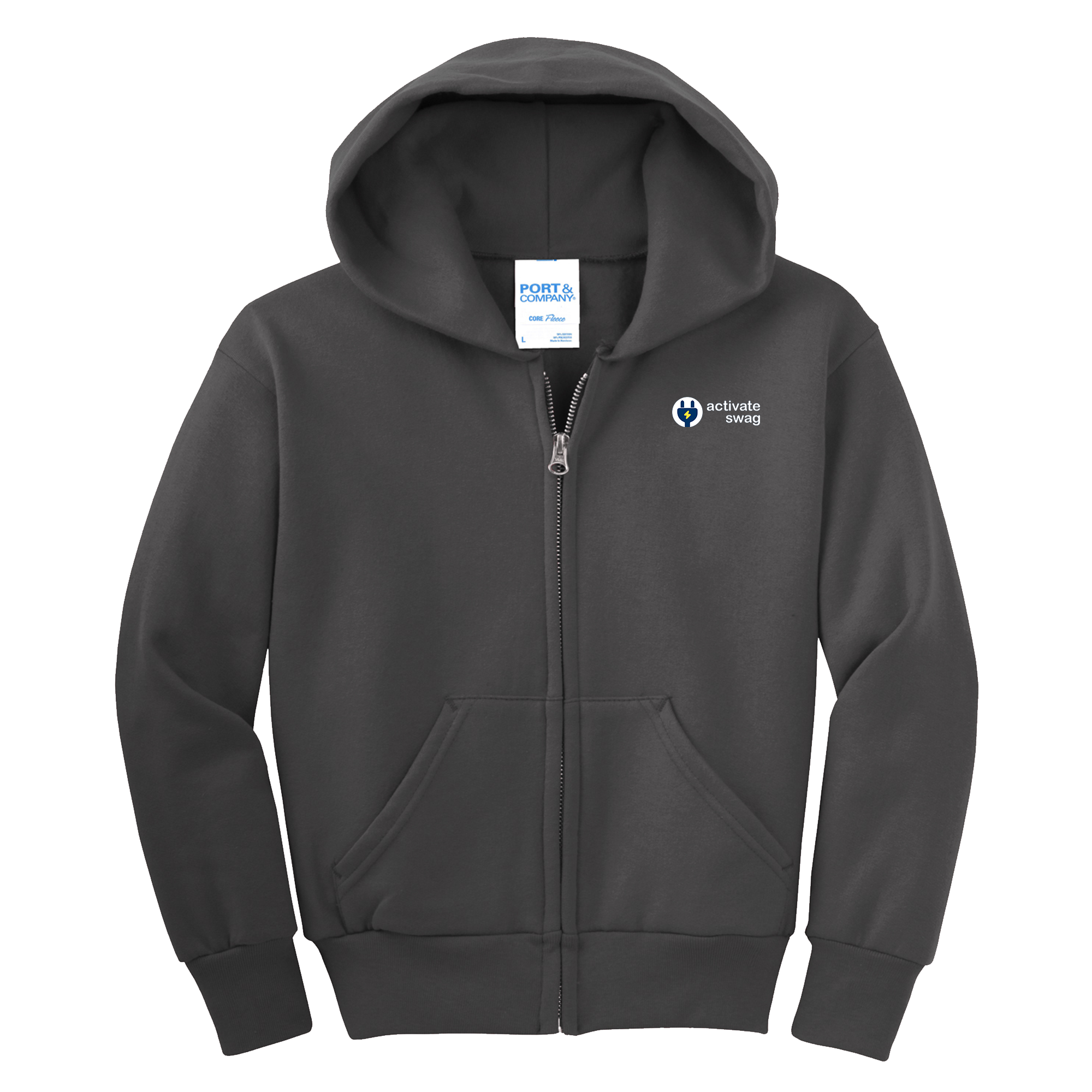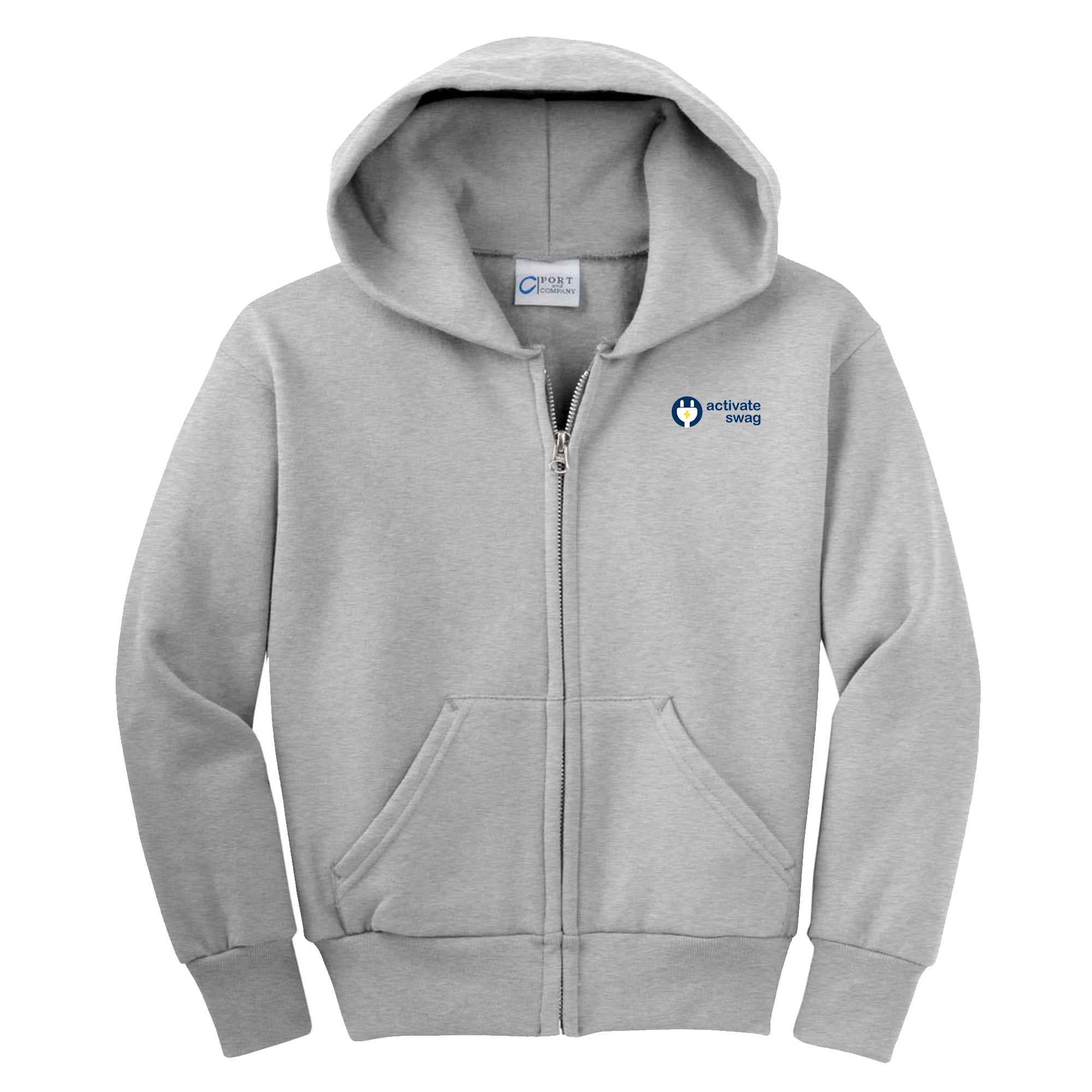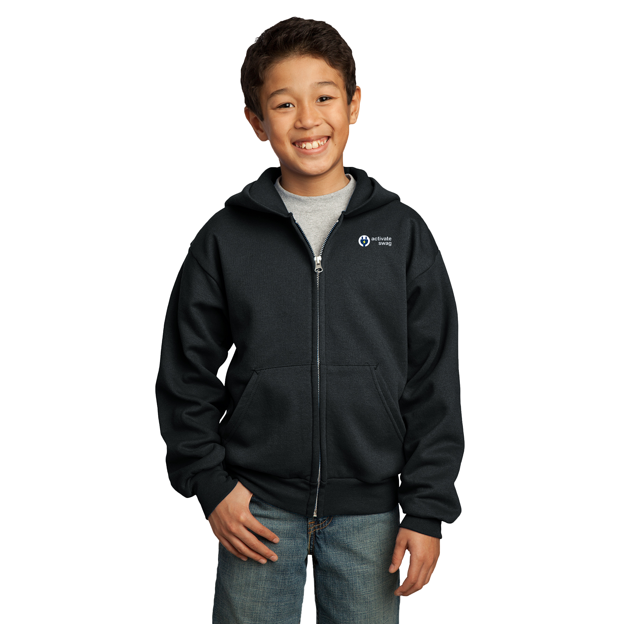 The Premium Youth Full Zip Hoodie features a great fit and left chest pocket to hold all of your things. This hoodie is made from 7.8-ounce, 50/50 cotton/poly fleece with an air jet yarn for softness.