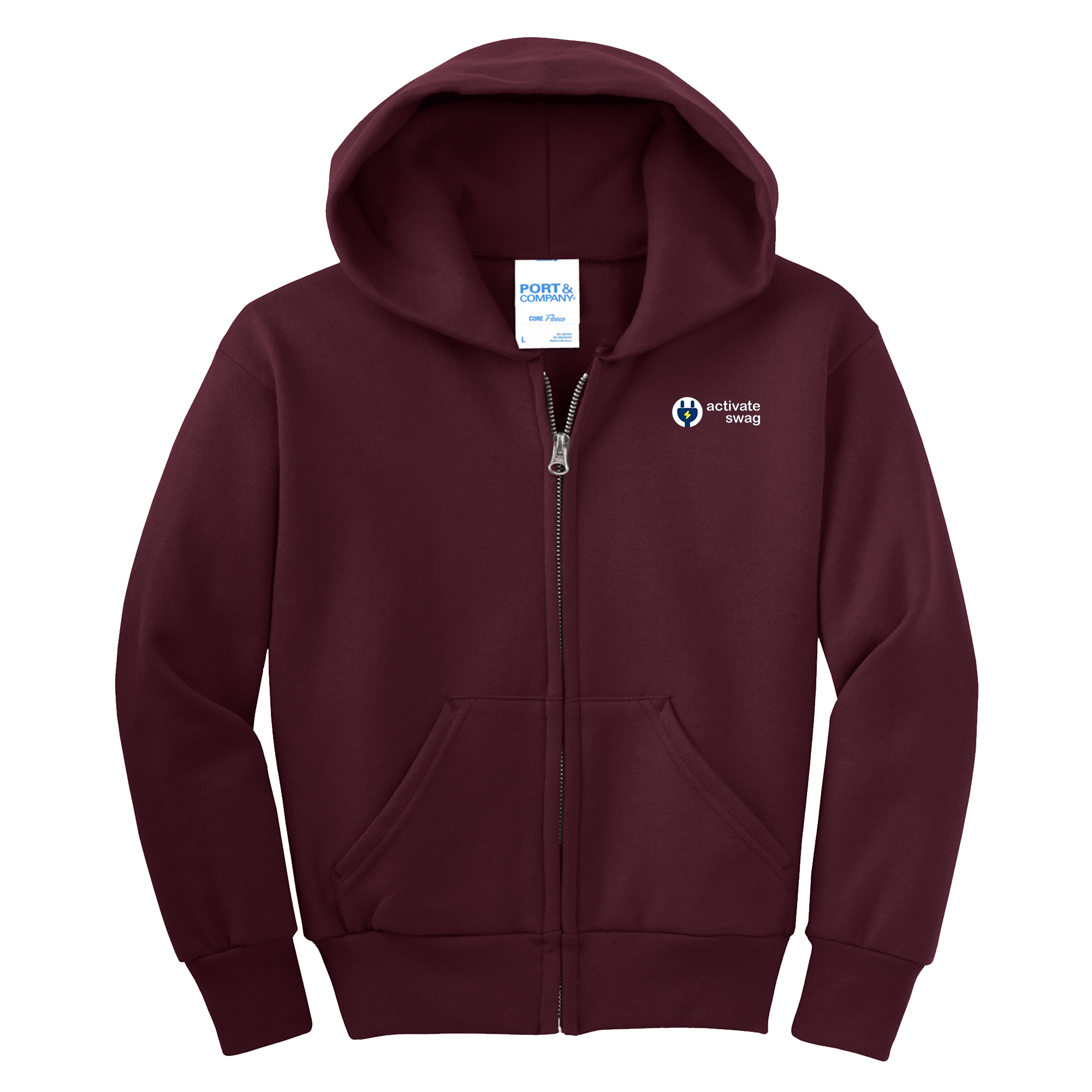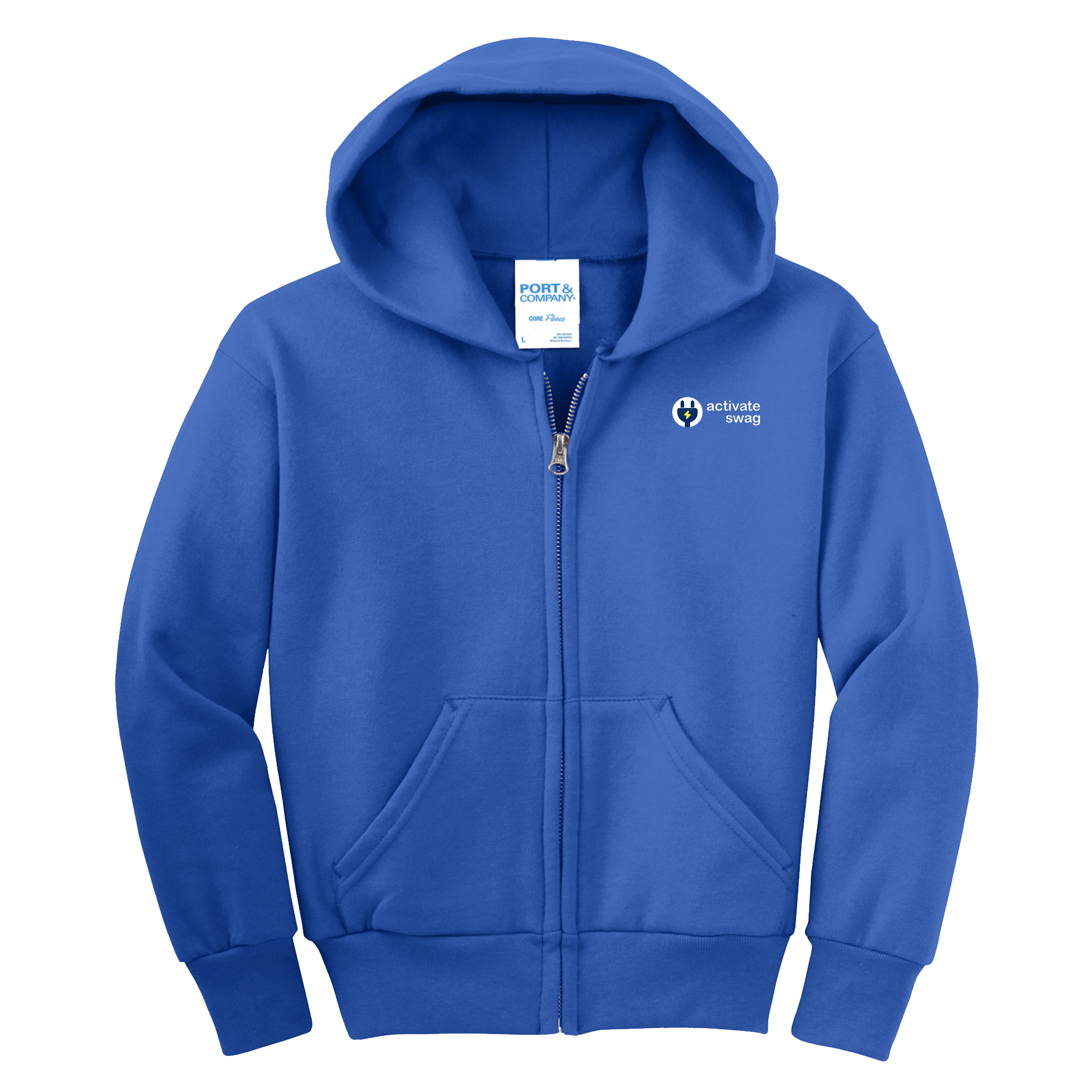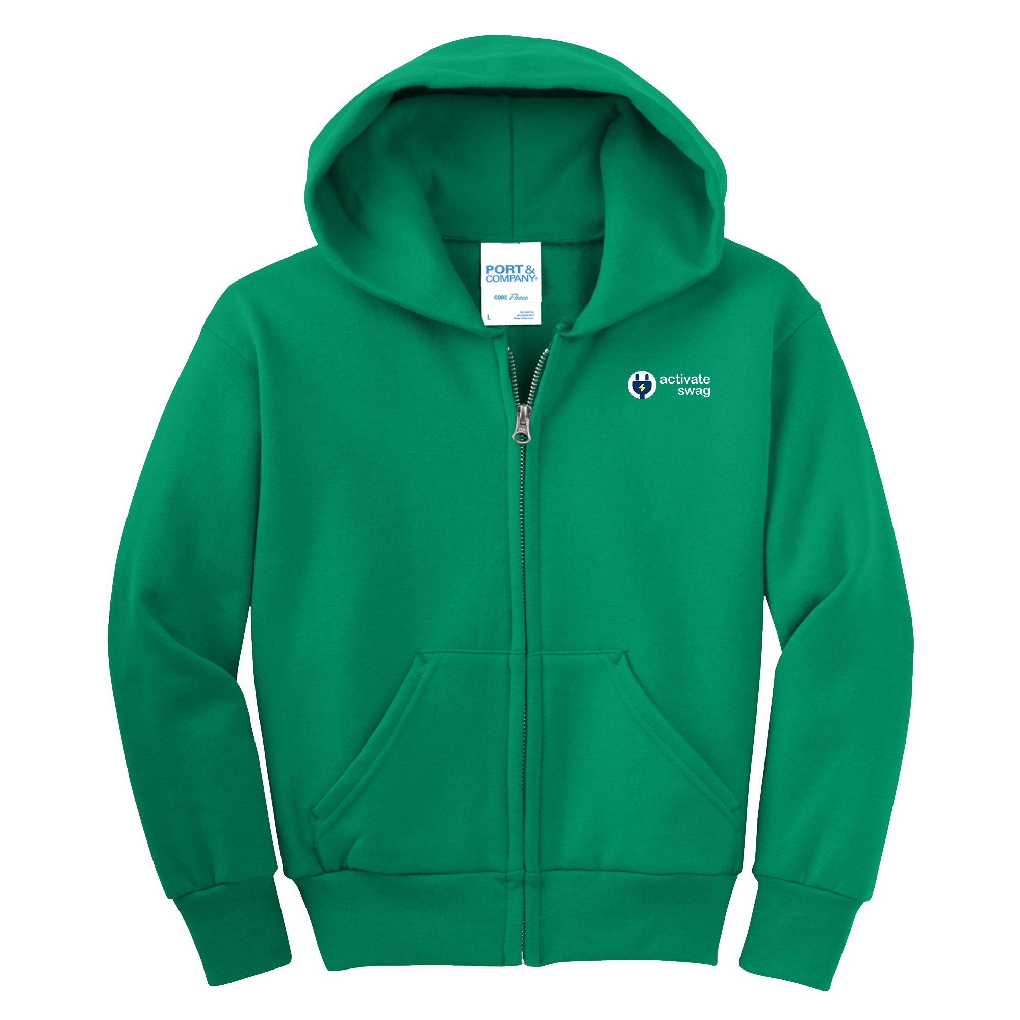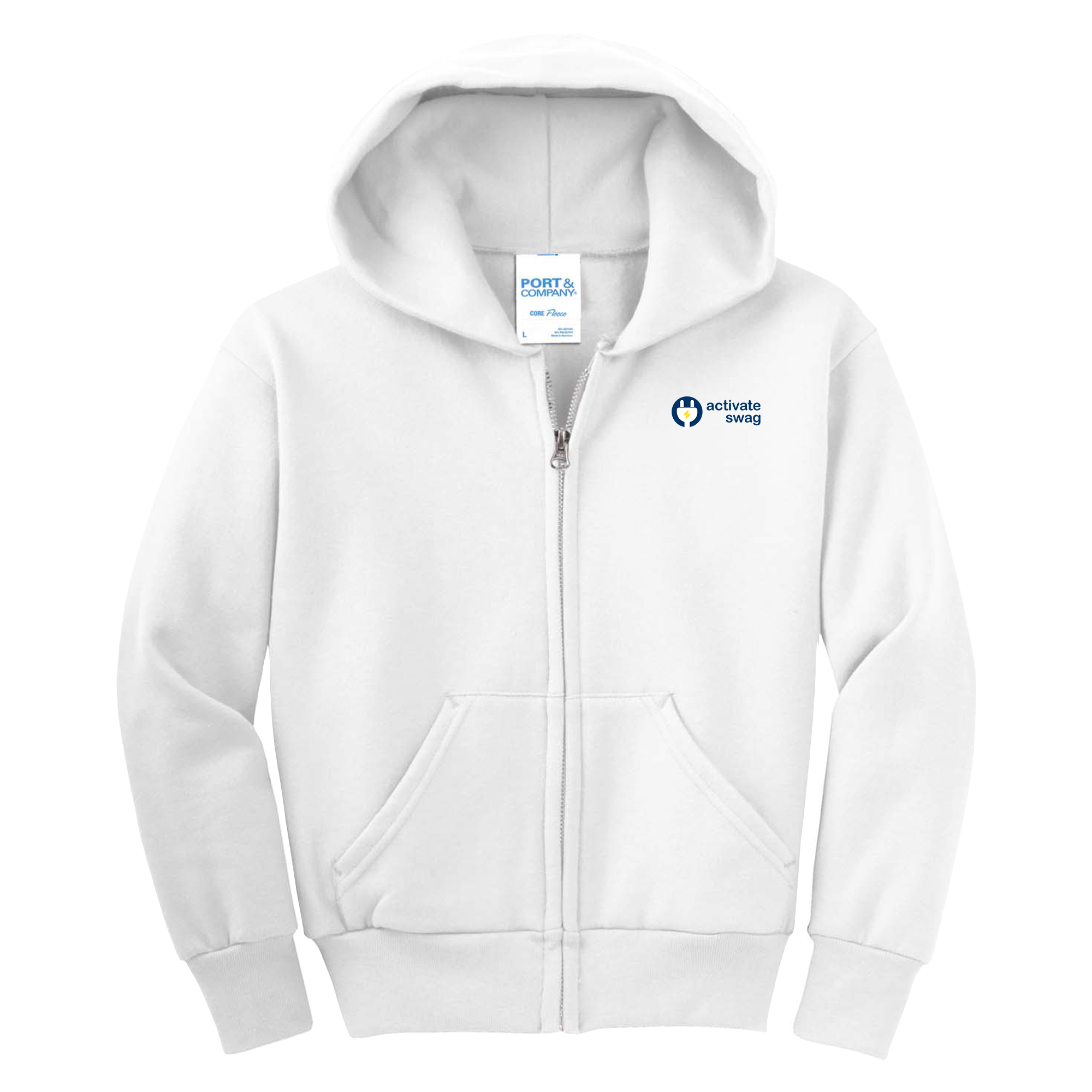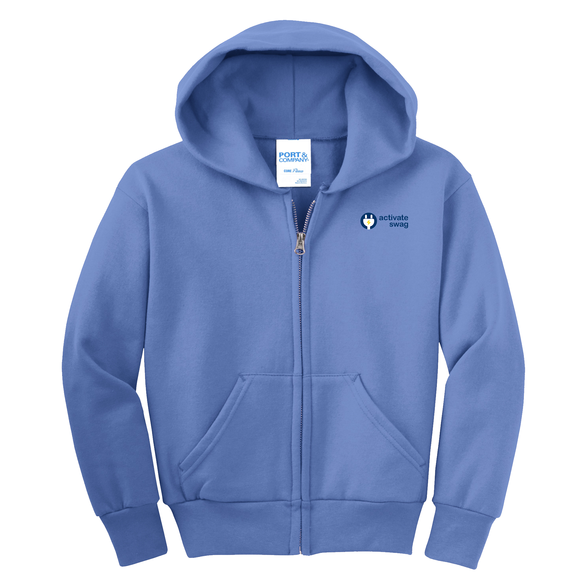 The Premium Youth Full Zip Hoodie features a great fit and left chest pocket to hold all of your things. This hoodie is made from 7.8-ounce, 50/50 cotton/poly fleece with an air jet yarn for softness.