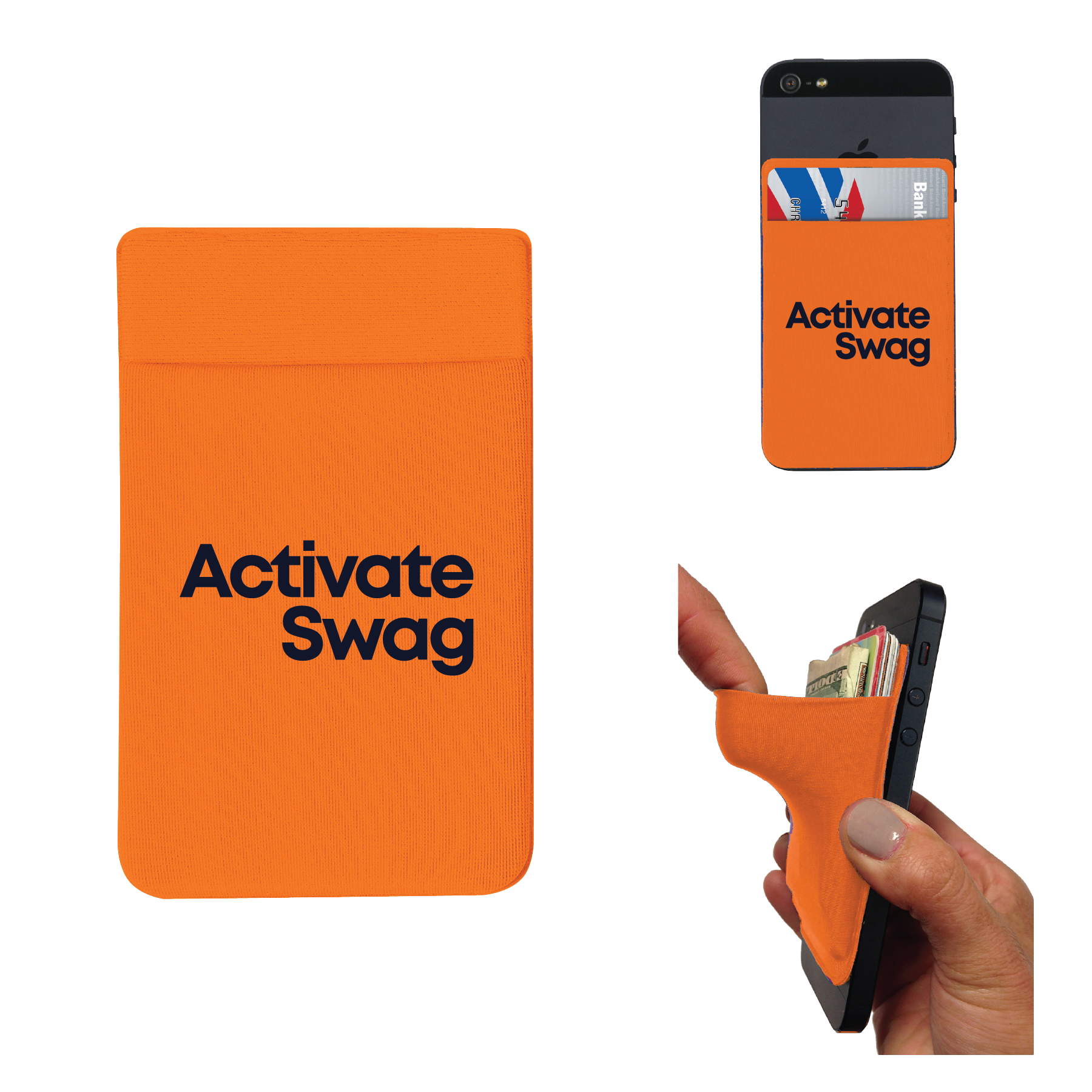 Keep your cards organized on the go! This card sleeve adheres to the back of your phone with strong adhesive. It's perfect for carrying identification, room keys, business cards, cash or credit cards. With an overall size of 2 1/4" x 3 3/4", this sleeve is made from stretchy material. Choose from several different colors and customize this item with a silkscreen imprint of your company name or logo. Make this one of a kind card sleeve your next trade show giveaway!