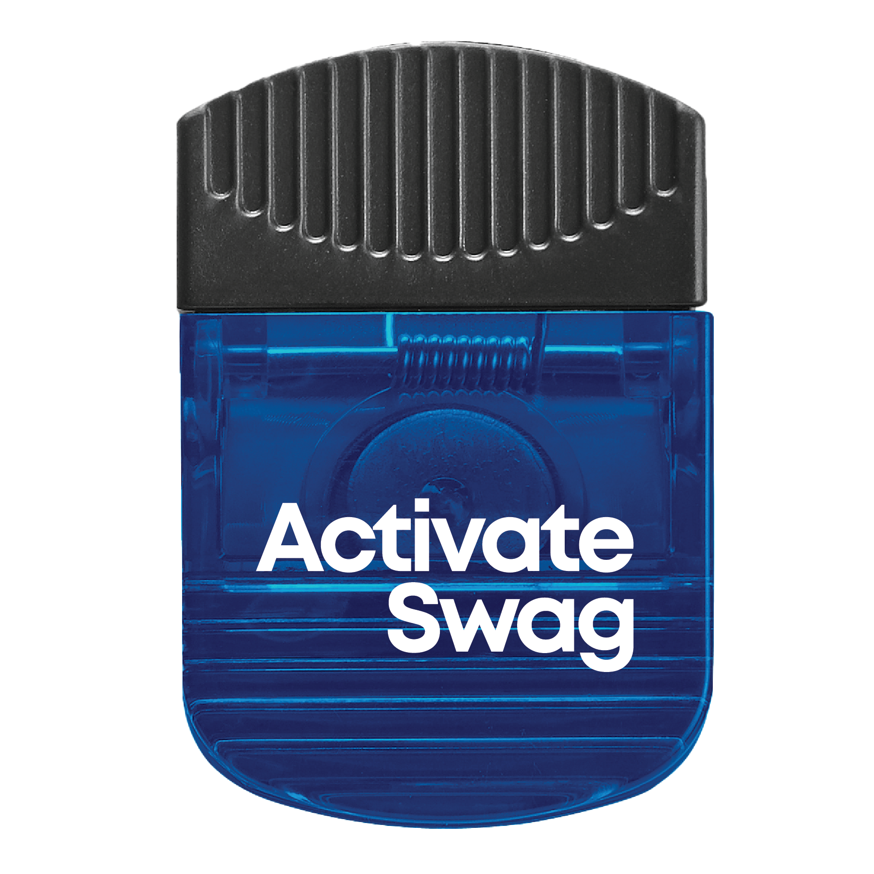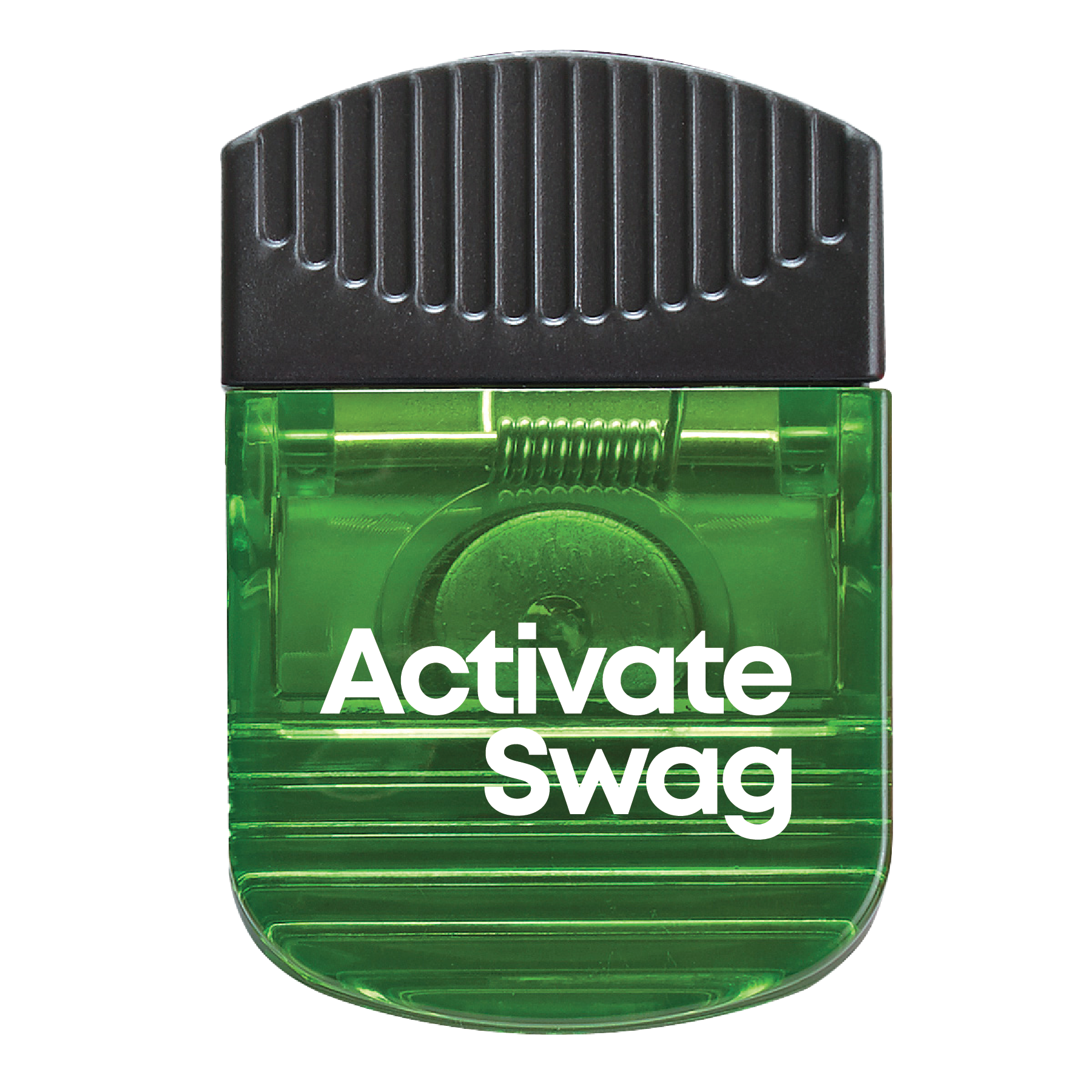 This wide rectangle clip features a spring-loaded hinge with a magnet on the back side and a large black rubber grip. It comes in several translucent color choices. With an approximate size of 2 W x 3" H, a large imprint area is offered for you to add a custom imprint of your company name and logo. What a fun way to attract potential customers to your brand! This item contains one or more small magnets. Keep out of reach of small children.